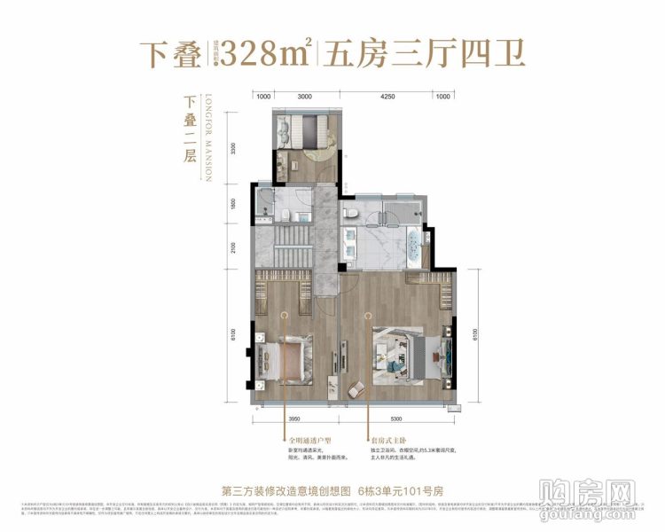 5室3廳4衛,【下疊·約328㎡五房三廳四衛】(5室3廳,328平,南北)