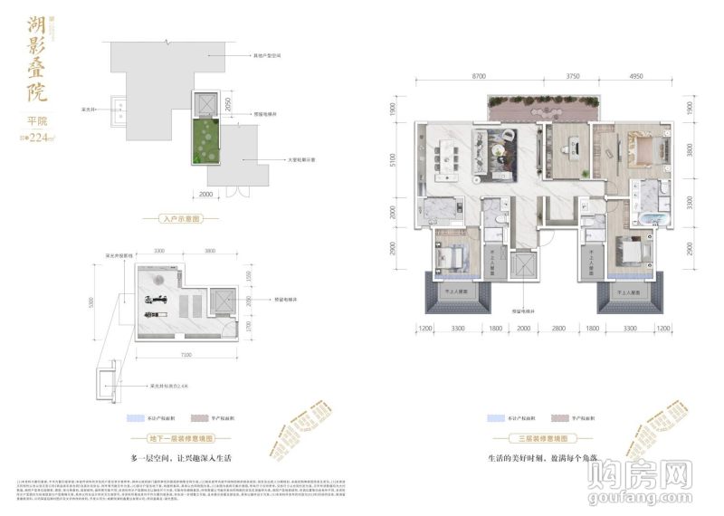 湖影疊院2+1平院224㎡(3室3廳,224平,南北)
