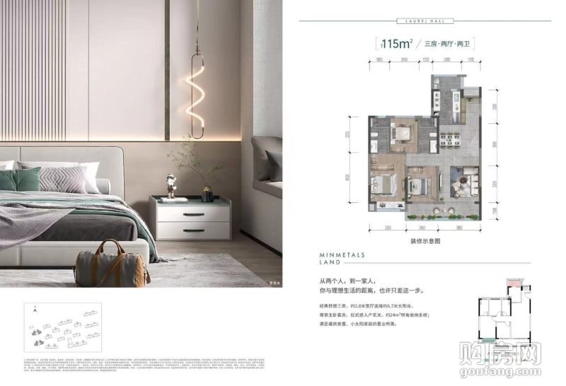 五礦香投桂語堂-建面約115㎡戶型(3室2廳,115平,南北)