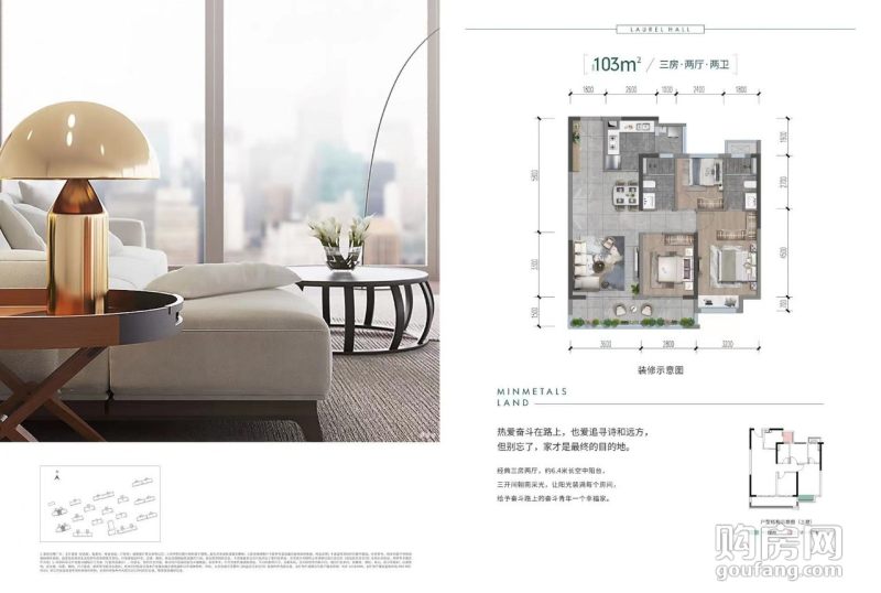 五礦香投桂語堂-建面約103㎡戶型(3室2廳,103平,南北)