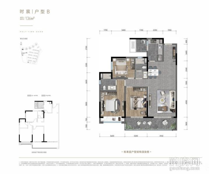 中糧保利天府時區(qū)B戶型(3室2廳,136平,南北)
