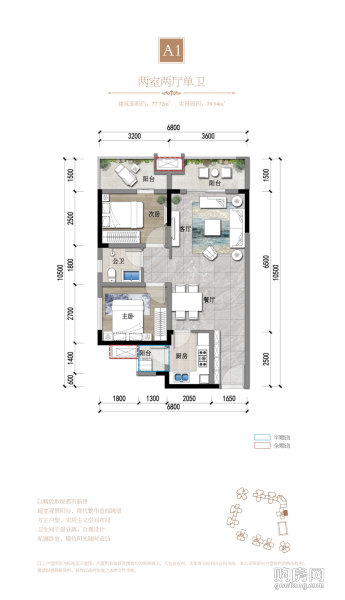 A1戶型(2室2廳,77.72平,南北)