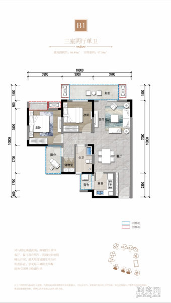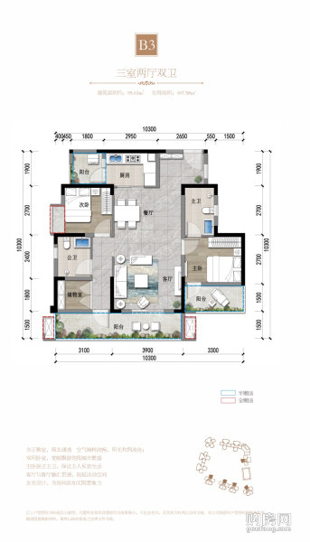 B3戶型(3室2廳,95.63平,南北)