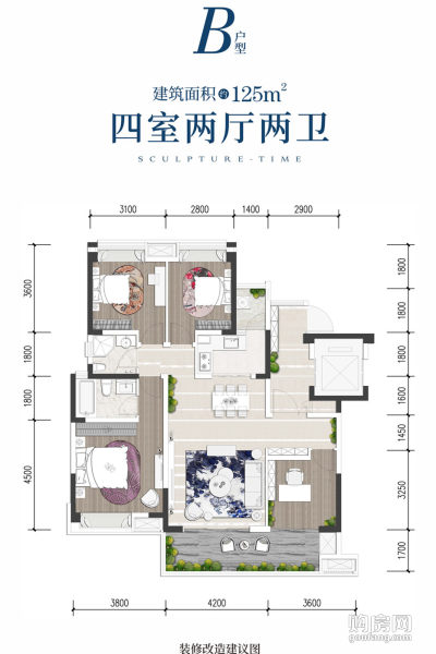 B戶型(4室2廳,125平,)