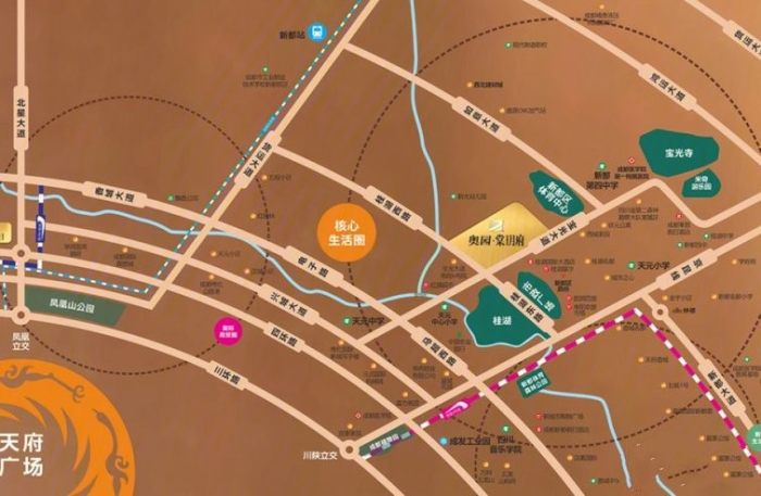 奧園棠玥府地處新都老城腹地,寶光大道與桂湖西路交匯處,這里是新都最成熟、最繁華之地。東臨桂湖公園,南側飲馬河蜿蜒流淌,奧園棠玥府擁有非常優質的自然生態資源。該項目占地約31畝,建筑面積約11萬㎡。建筑風格為港式的建筑品位與綠色、新古典主義的藝術元素相結合,具有濃厚的人文氣息。整個社區規劃秉承 “以人為本、科學運動、健康生活”的開發理念,內部設有適齡兒童活動區,看護區、健身區、成人活動區以及健身跑步道,營造一種人性化的文明社區。建筑戶型都比較注重景觀,能最大限度地滿足每一戶的景觀視野,享受最大化的景觀資源。而社區的商業將按照生活的高品質進行規劃,為業主提供日常購物需求。