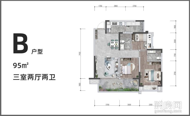 通威世地長灣B戶型 (3室2廳,95平,南)
