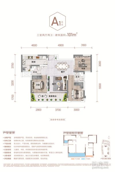 天府麓城A1戶型(3室2廳,101平,南)