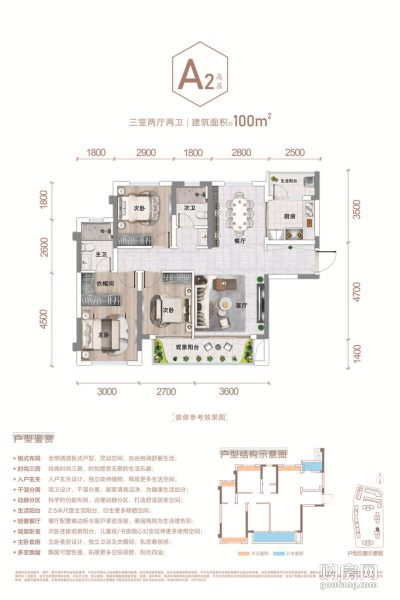 天府麓城A2戶型(3室2廳,100平,南)