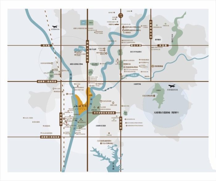 江口水鎮所在區域發展交通先行,三橫三縱的立體交通網路連接成都市區及國際城南各個核心的商務科創板塊;已開通的地鐵5號線,規劃中S13 輕軌可以到達項目所處板塊;同時項目周邊雙流機場及在建中的簡陽天府國際機場雙機場的配置,可以快速到達機場進行中轉交通蛛網化指日可待。